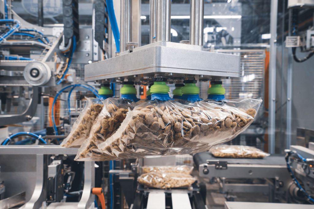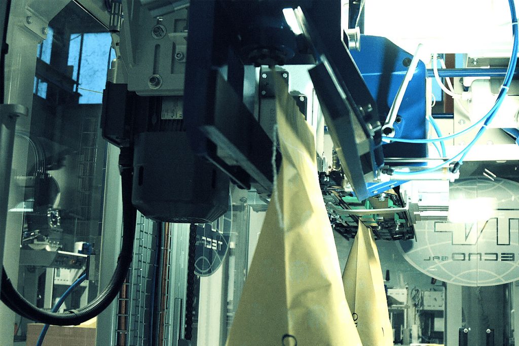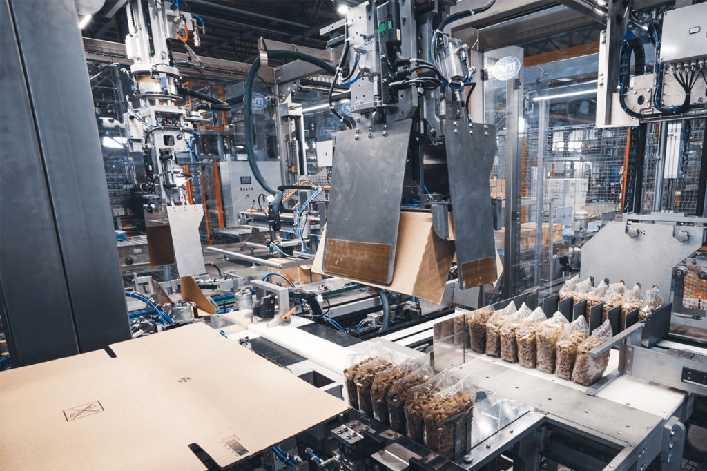 MF TECNO ofrece una gama de soluciones «pick & place» para la introducción de bolsas, bricks o cajas en cajas grandes, mediante robots o medios convencionales.