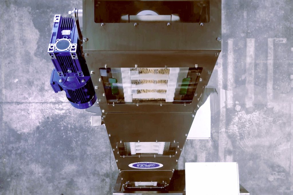 MF TECNO ofrece diferentes tipos de alimentadores de pesadoras electrónicas: con canal vibratorio (único o múltiple), con cinta, con sinfín horizontal, por gravedad, con turbina.